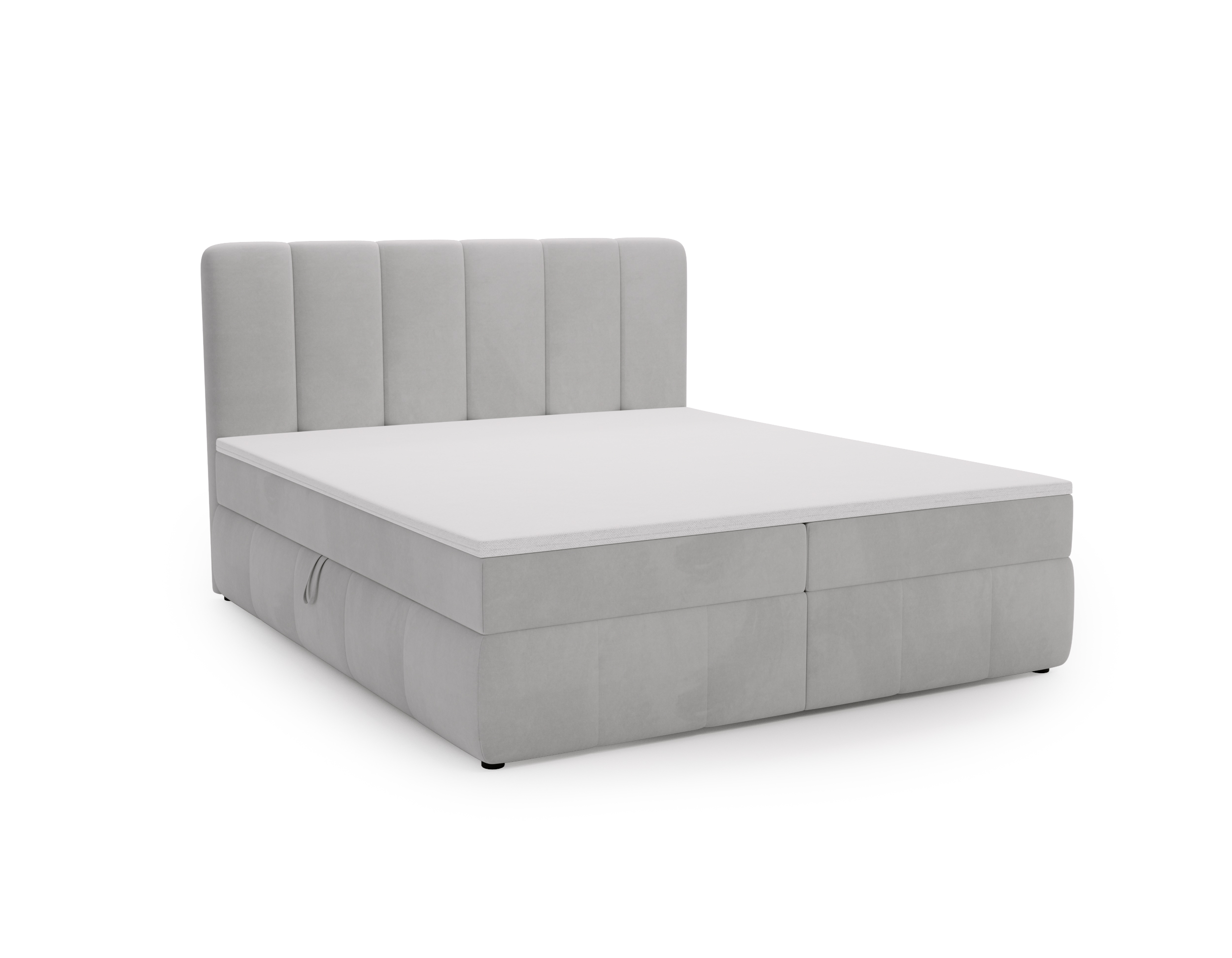 materac w komplecie, z zagłówkiem, ze stelażem, pojemnik na pościel otwierany do góry