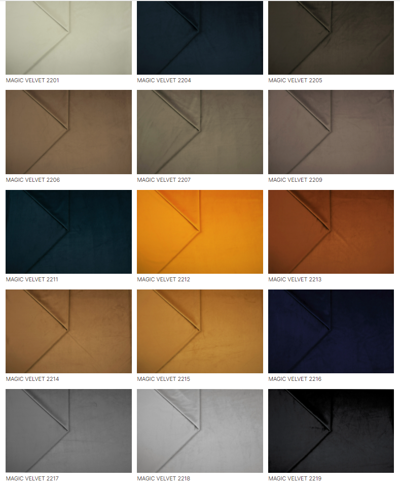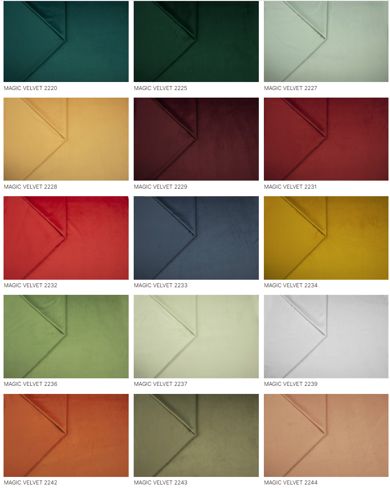 • wysokiej jakości tkaniny velvetowe (plamoodporne/wodoodporne)